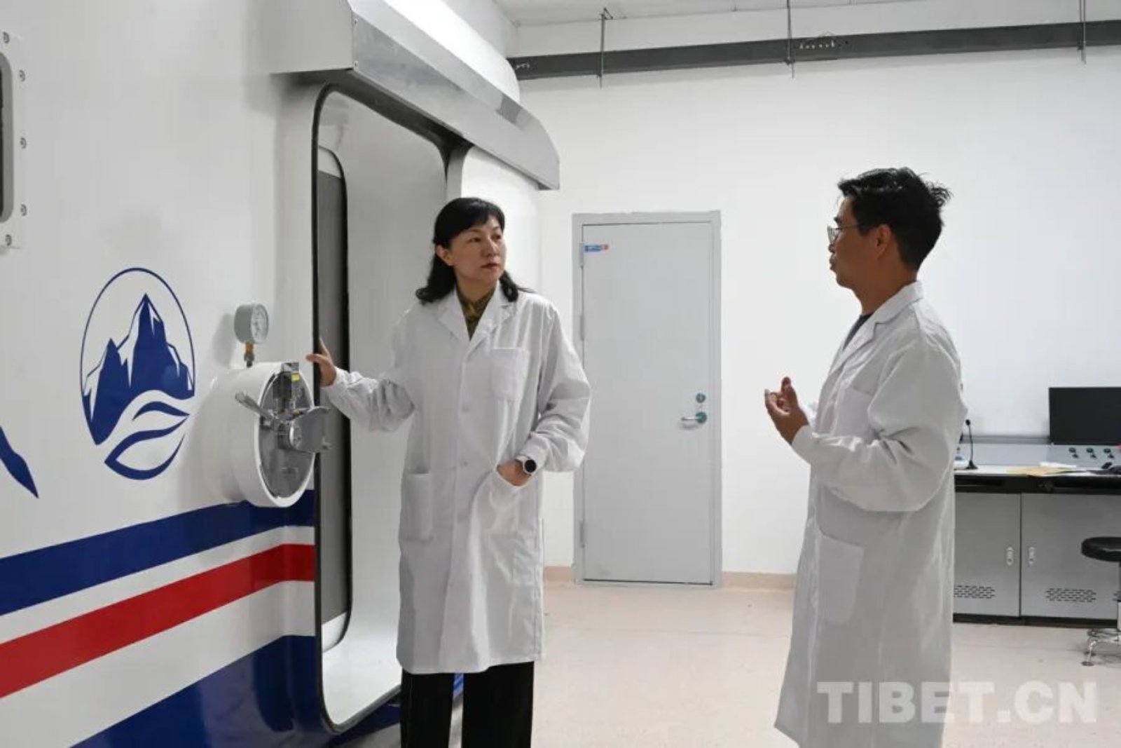 祖凌云(左)在西藏大学院士工作站考察环境暴露仓工作条件 受访者供图