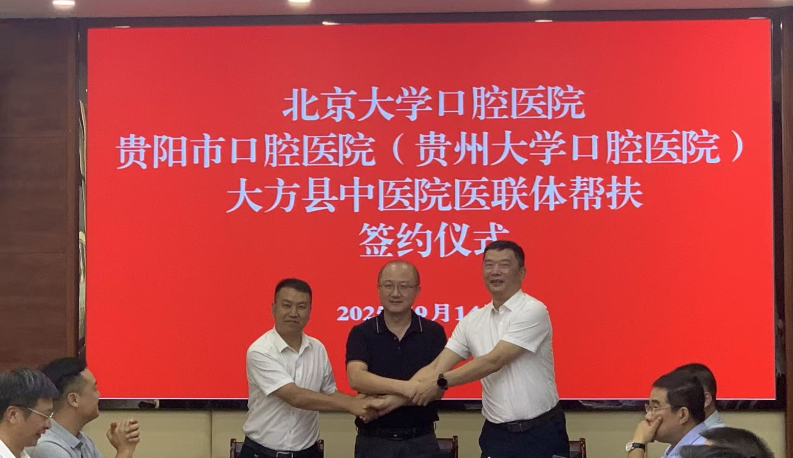9月14日,农工党北京市委会赴贵州省毕节市大方县开展定点帮扶调研,期间,北京大学口腔医院牵头,联合贵阳市口腔医院与大方县中医医院正式签订医联体合作协议。